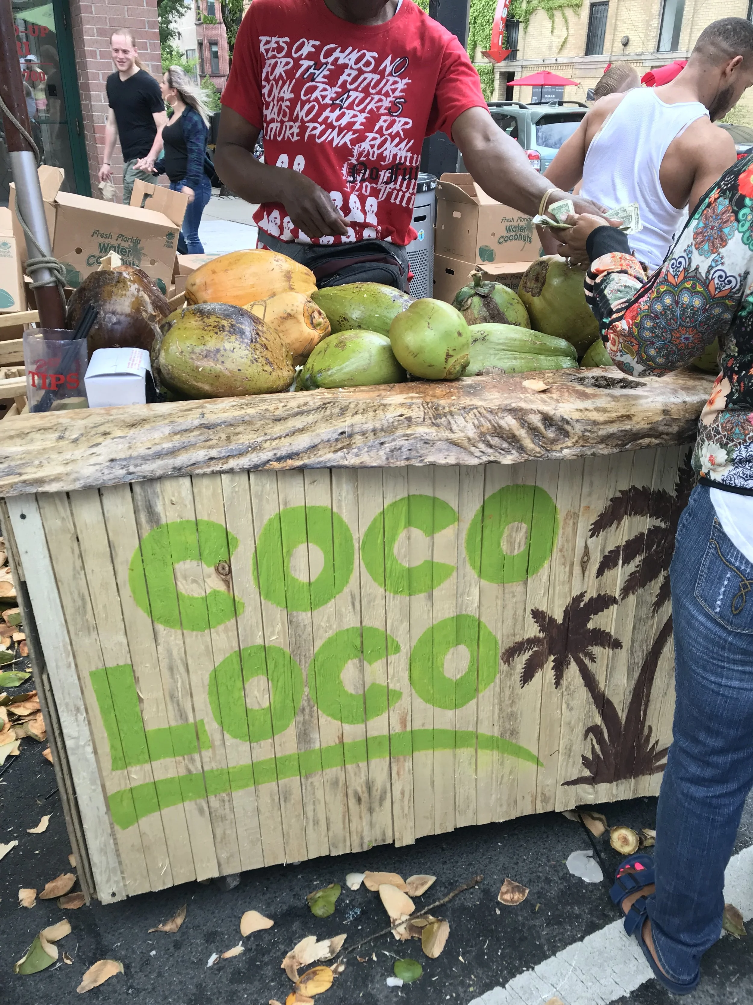 above is a pic of a coconut vendor pop-up stand during one of the all-day 5th ave street fairs that take place in my Brooklyn neighborhood a couple of times each year….